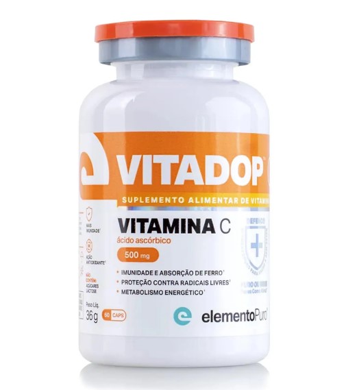 A vitamina C é um nutriente essencial para o funcionamento do metabolismo e não é produzida pelo nosso organismo, por isso, precisa ser consumida via alimentação. Porém, com o cotidiano agitado, é difícil manter uma alimentação equilibrada e, muitas vezes, ela não supre a ingestão diária recomendada. Aí entra a necessidade do suplemento alimentar! VITADOP C fornece a quantidade ideal recomendada para manter sua saúde em dia no que diz respeito à necessidade de vitamina C, no padrão de qualidade elementoPuro.